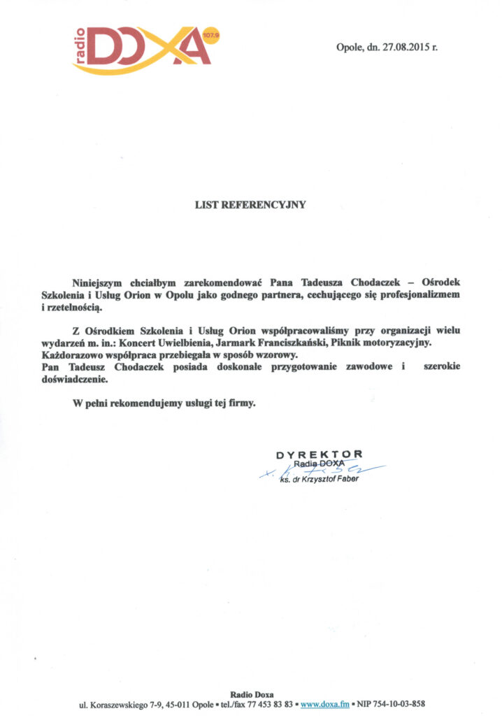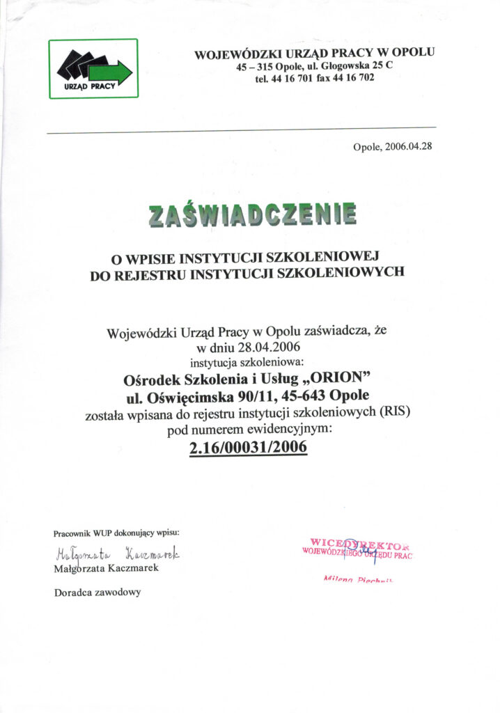 Potwierdzenie jakości prowadzonych szkoleń oraz wieloletniego doświadczenia naszej placówki.